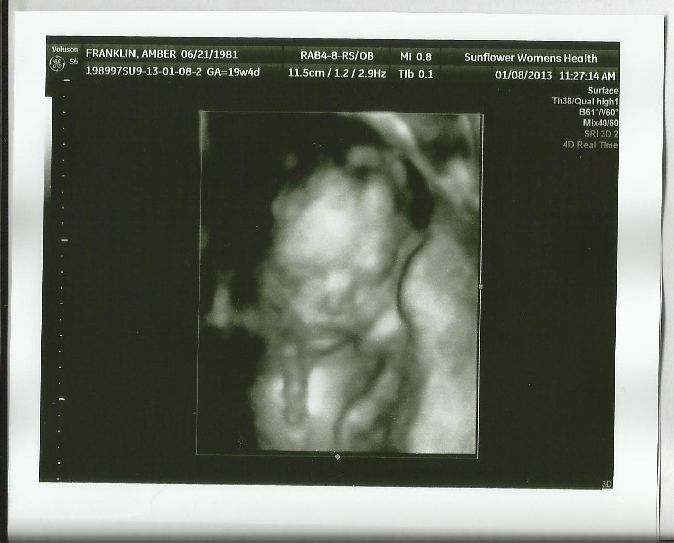 His sweet profile, and his arm up by his head. James sleeps with his arm up by his head, and that is how this baby was a lot of the sonogram. So sweet!